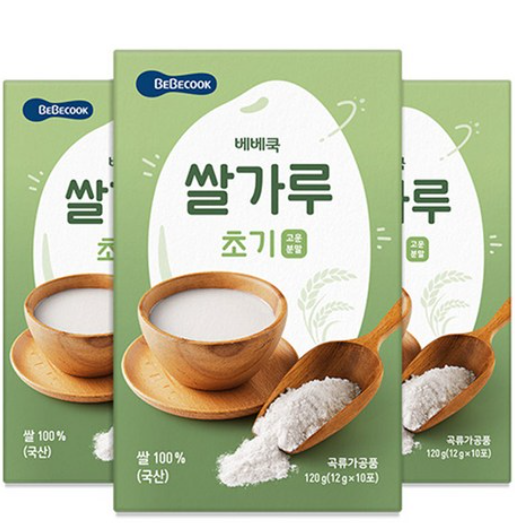 베베쿡 유기농 쌀가루 초기 12g x 10p, 120g, 3개 - 쌀/찹쌀/현미가루 | 쿠팡